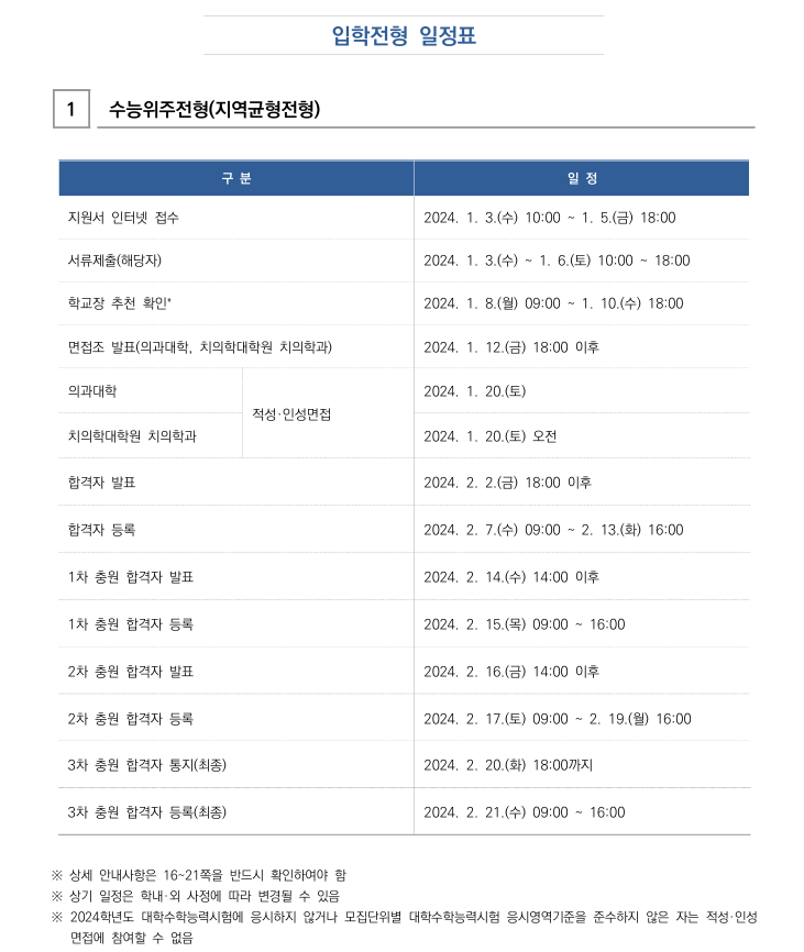 지원서 접수 일은 모두 과 동일하며 제출서류는 전형마다 다르기 때문에 홈페이지를 통해서 확인은 필요하다.